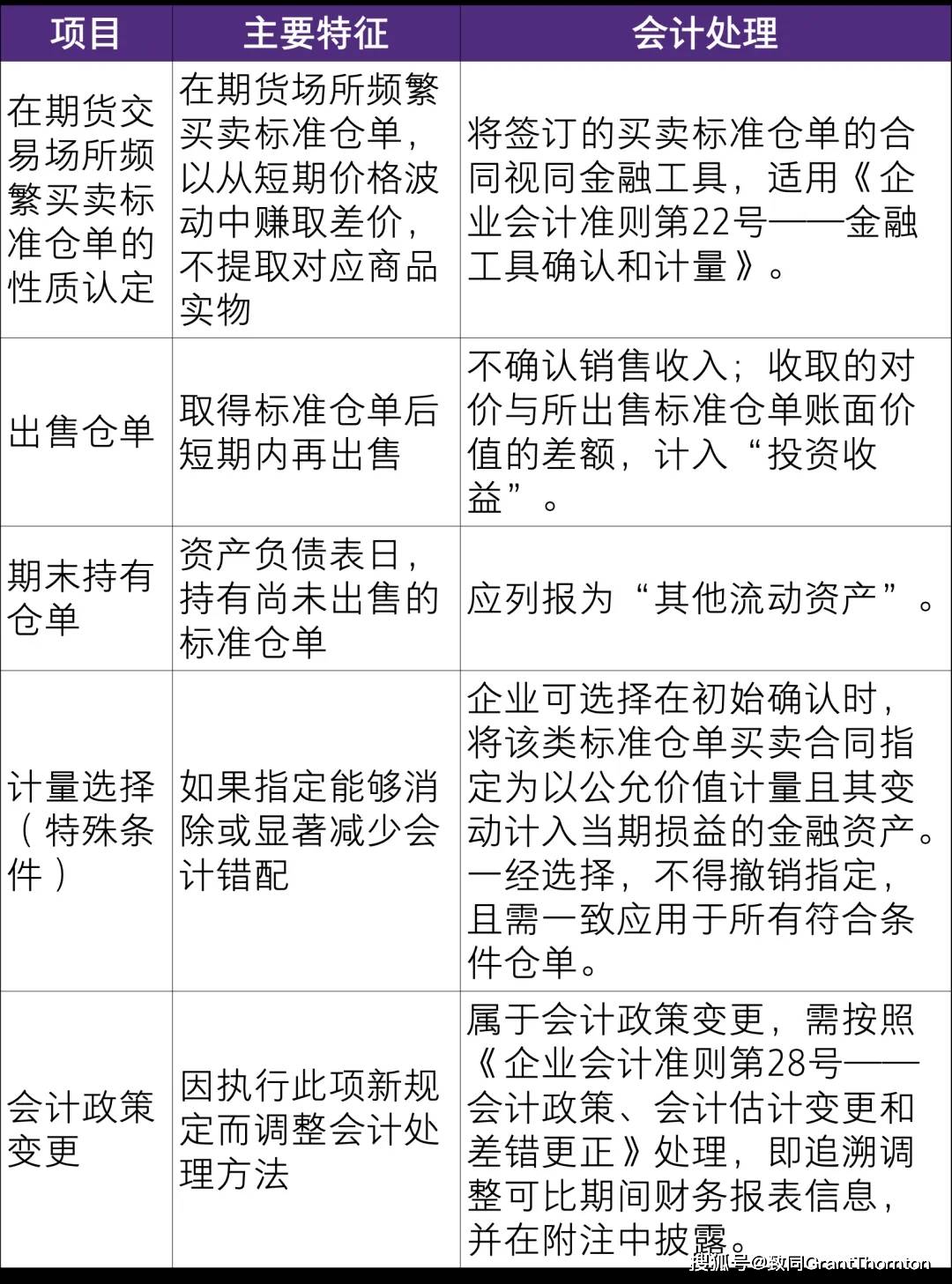 根据金融工具确认计量准则,企业在期货交易场所通过频繁签订买卖标准仓单的合同以赚取差价、不提取标准仓单对应的商品实物的,通常表明企业具有收到合同标的后在短期内将其再次出售以从短期波动中获取利润的惯例,企业应当将其签订的买卖标准仓单的合同视同金融工具,并按照金融工具确认计量准则的规定进行会计处理。企业按照前述合同约定取得标准仓单后短期内再将其出售的,不应确认销售收入,而应将收取的对价与所出售标准仓单的账面价值的差额计入投资收益;企业期末持有尚未出售的标准仓单的,应将其列报为其他流动资产。对于按照前述合同约定取得的标准仓单,如果能够消除或显著减少会计错配的,企业可以在初始确认时选择以公允价值计量且其变动计入当期损益,并一致应用于符合选择条件的所有标准仓单。对于初始确认时已选择以公允价值计量且其变动计入当期损益的标准仓单,企业在后续期间不得撤销该选择。